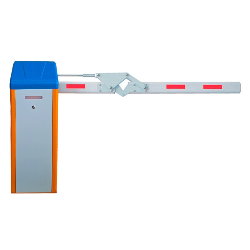 Модель WJDZE-BL: автоматический шлагбаум для автомобильных парковок. Складная стрела под 180° позволяет использовать данную модель на объектах, где имеется ограничение по высоте.