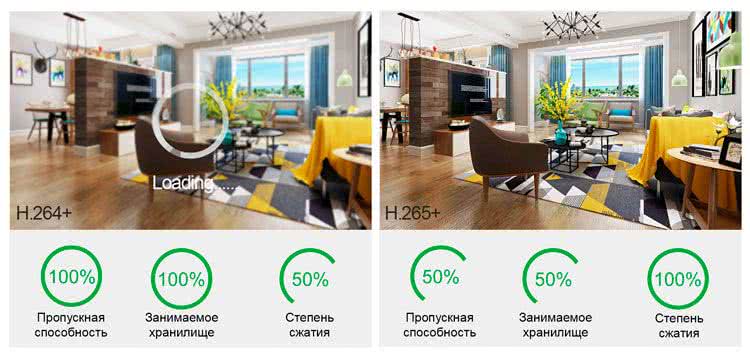 Экономьте средства за счет уменьшения требуемого объема хранилища. Видеорегистратор Cantonk 4CH Wi-Fi поддерживает стандарты кодирования H.265 +, H.265, H.264 + и H.264, которые эффективно уменьшают размер данных и позволяют получать изображение высокой четкости.